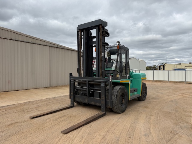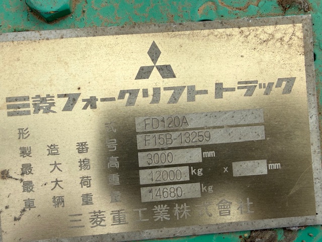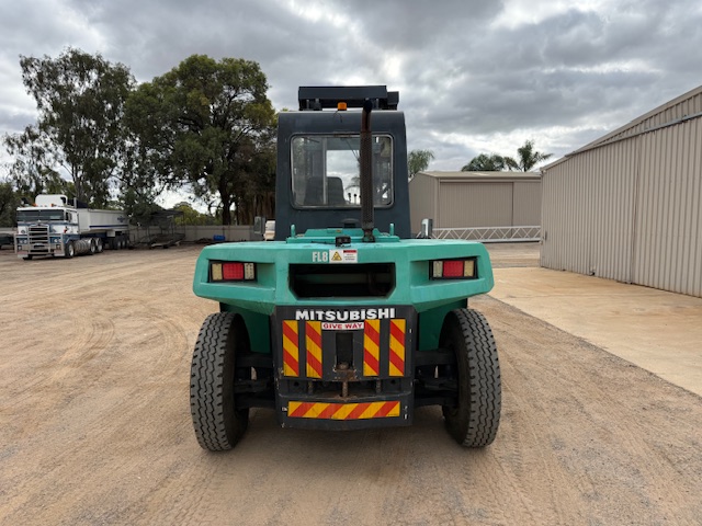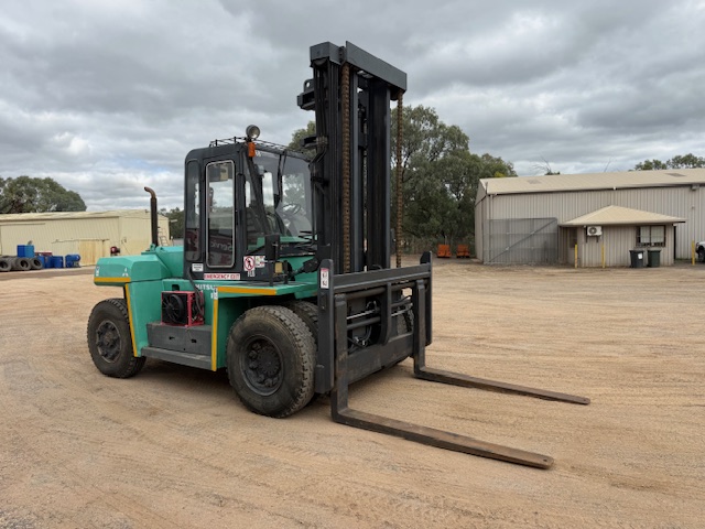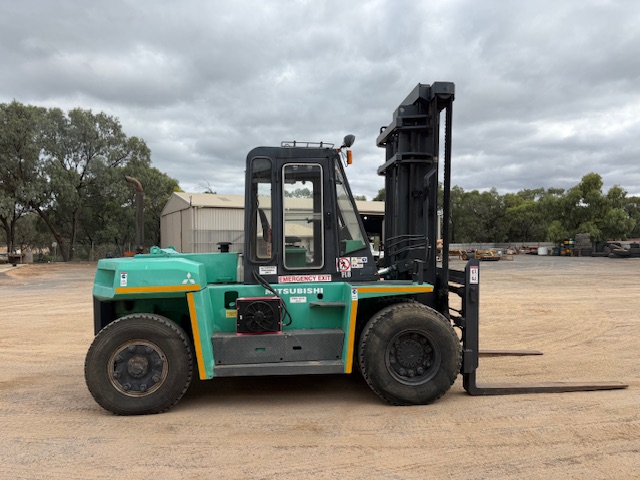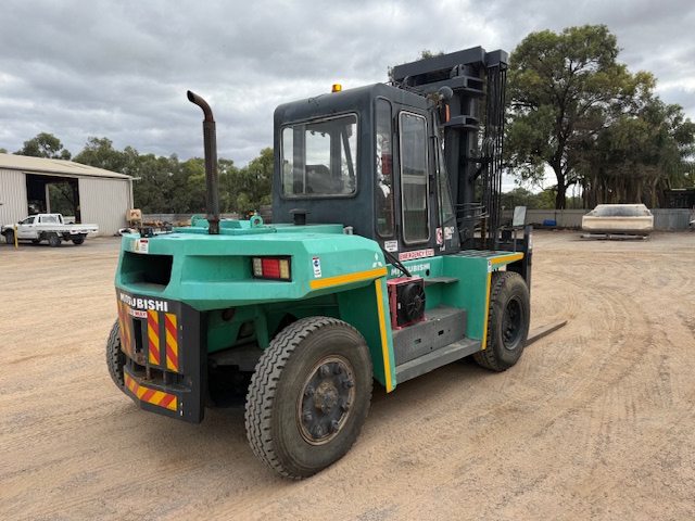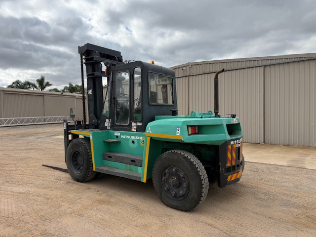 1995 Mitsubishi FD120A 12T forklift with only 3,200 hours. Enclosed air-con cab, diesel, shuttle shift automatic with pneumatic brakes.1.8m tines with all functions (lift/tilt/side-shift/ tine positioning, 2 stage mast with 4.1m lifting height. Good tyres all round. Straight from work, ready for work. $57,000 plus GST