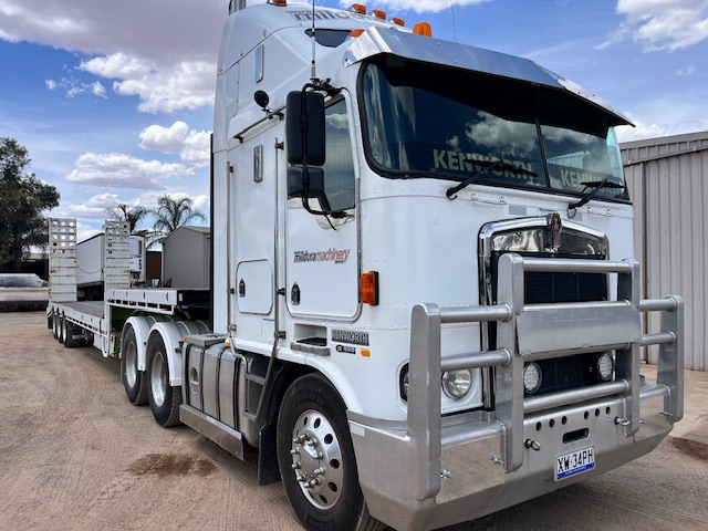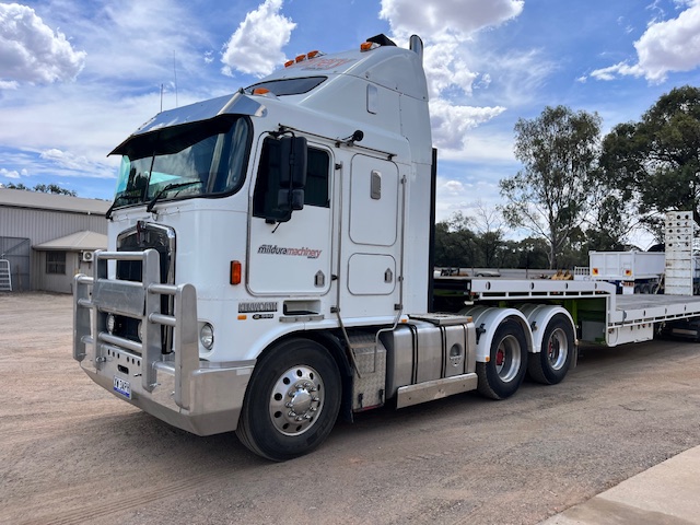 2003 Kenworth K104 with rebuilt C15 completed at Cavpower Adelaide less then 15,000kms ago. 550HP single turbo (non-ACERT) engine, road ranger, 90T rated, on airbags, alloy bull bar with spot lights, new stereo and dual UHFs, sports mufflers, alloy Alcoas all round and new steer tyres, recent paint and guards, turbo timer, everything works, no leaks, been used as a machinery dealership delivery truck, can come with quality 48ft drop deck as a package. Roadworthy done after rebuild, rego until April 2025. Truck only $55,000 plus GST.